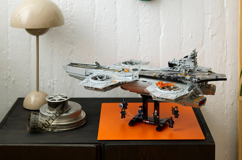 Met 3.057 stukjes is dit geen klein avontuur. Het vliegende commandoschip van S.H.I.E.L.D. is uitgewerkt met landingsbanen, motoren, een controletoren en verschillende interieurruimtes. Verspreid over het model zijn scènes uit de Avengers-films nagebouwd, met vereenvoudigde voorstellingen van bekende personages. Wie de films kent, zal die verwijzingen zonder moeite herkennen. Het afgewerkte model wordt tentoongesteld op een standaard, wat het meteen geschikt maakt als pronkstuk in de kast.
